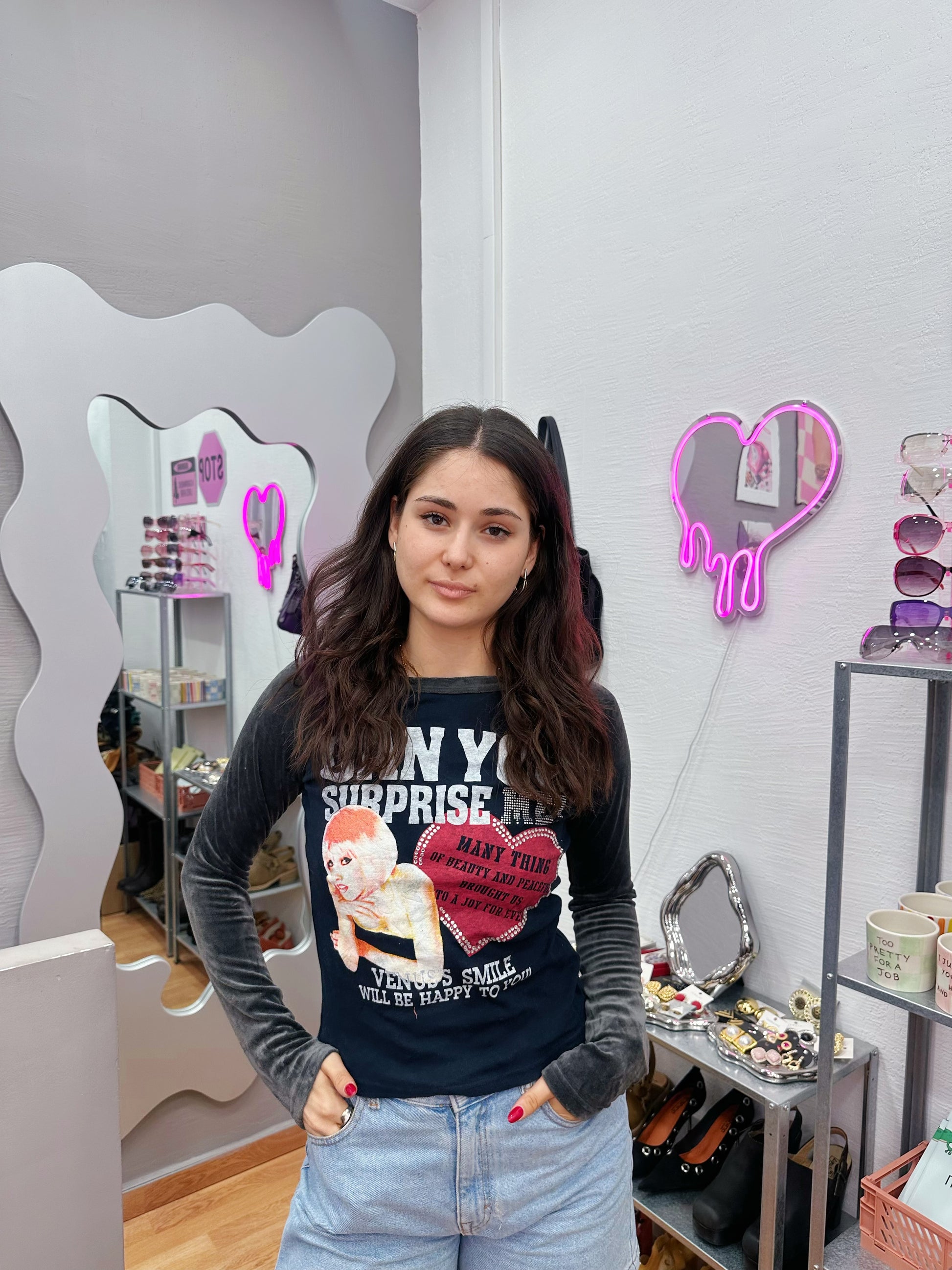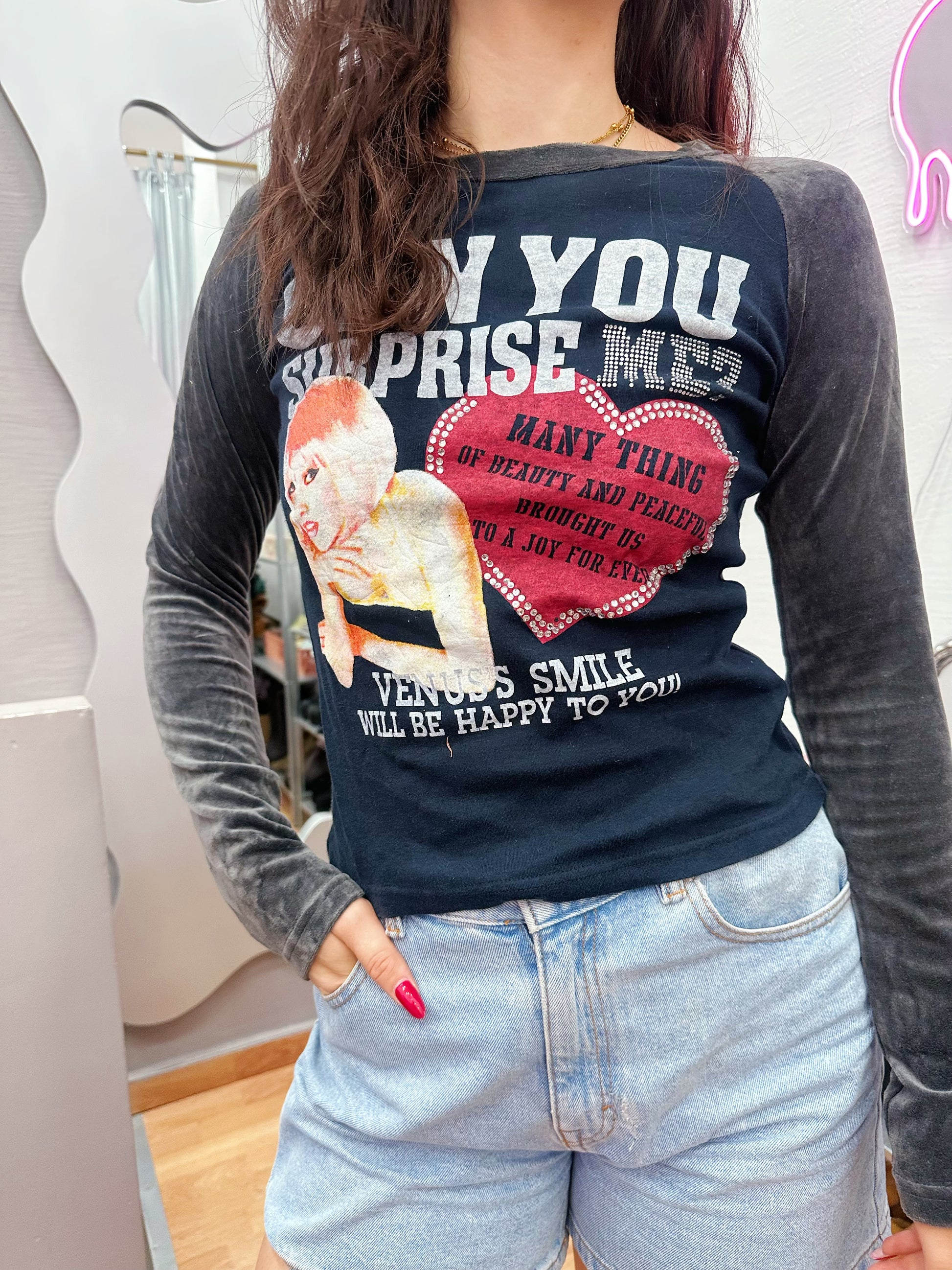 Cute top with velvet sleeves