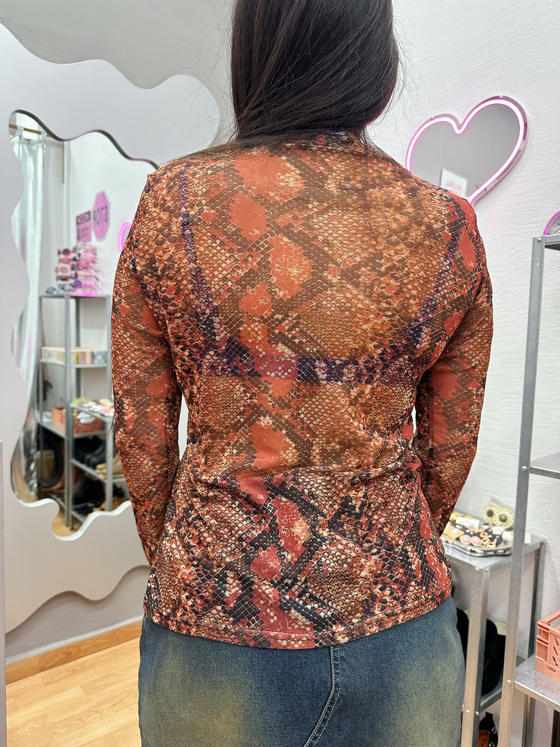 Snake print mesh top